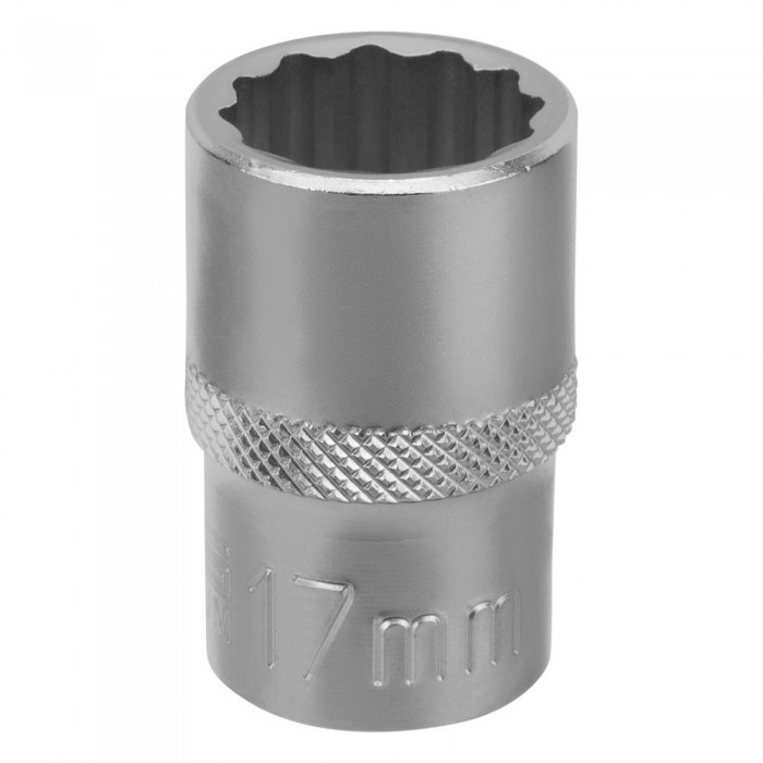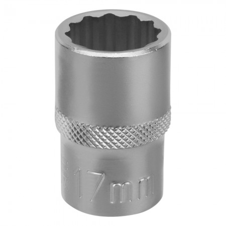 Головка торцевая, 17 мм, двенадцатигранная, CrV, под квадрат 1/2, хромированная Stels