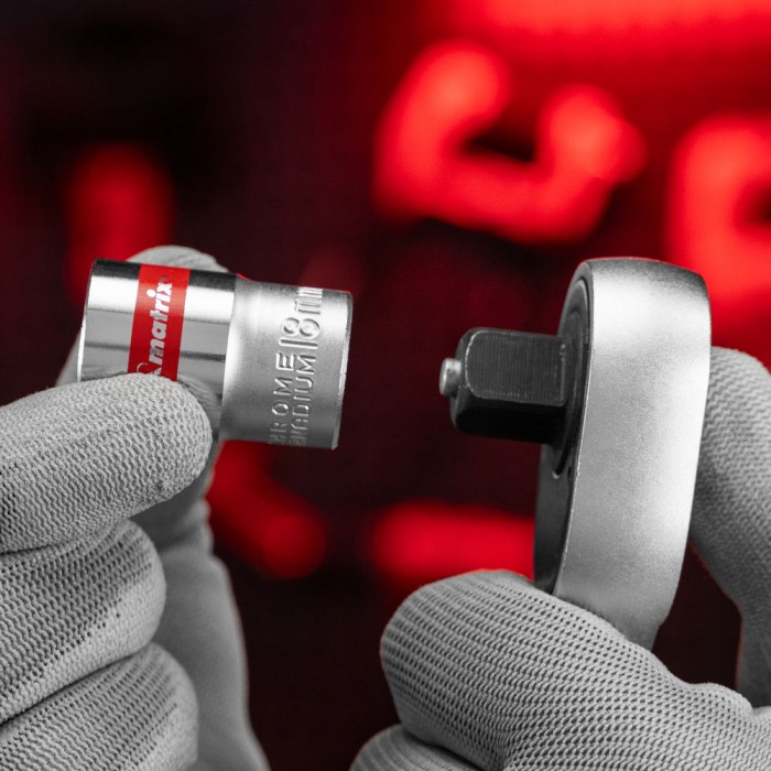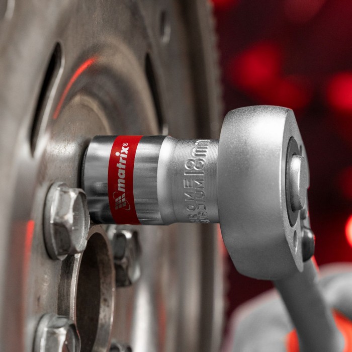 Головка торцевая, 18 мм, шестигранная, CrV, под квадрат 1/2, хромированная Matrix