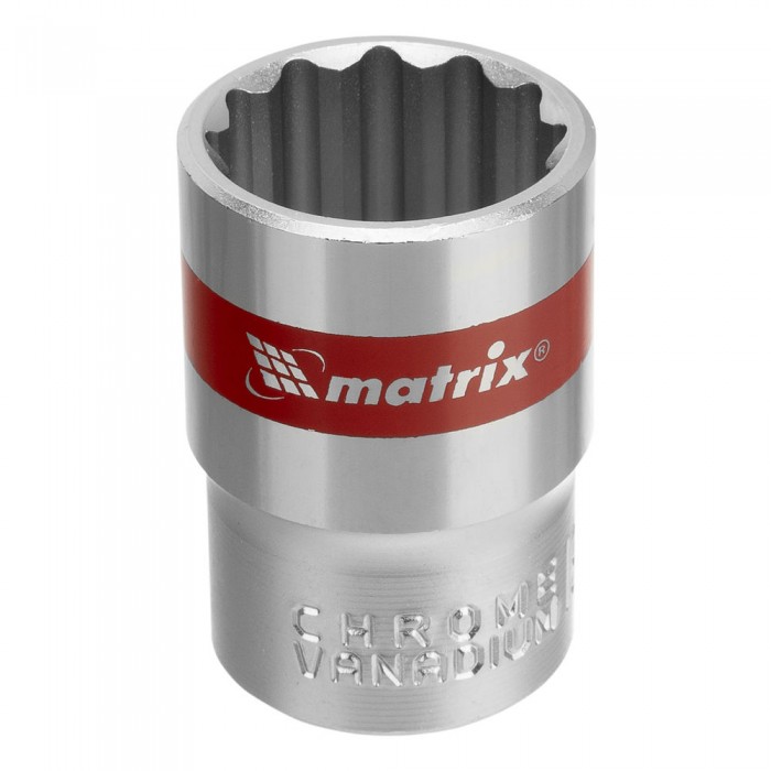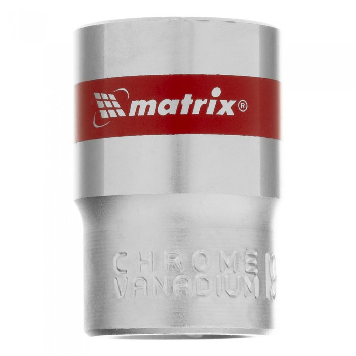 Головка торцевая, 19 мм, двенадцатигранная, CrV, под квадрат 1/2, хромированная Matrix