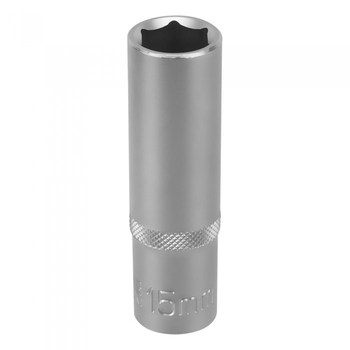 Головка торцевая удлиненная, 15 мм, шестигранная, CrV, под квадрат 1/2 Stels