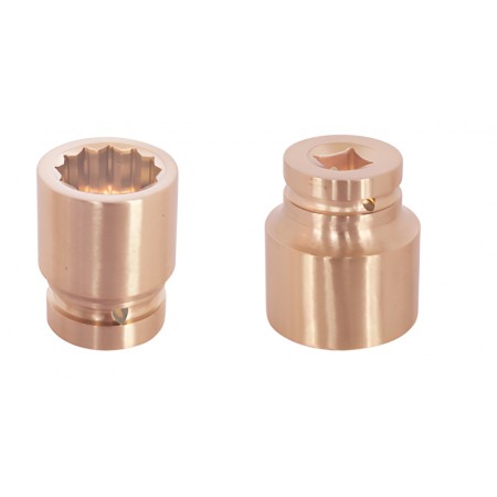 Головка торцевая ударная искробезопасная HORTZ. Торцевая искробезопасная головка предназначена для выполнения слесарно-монтажных работ в потенциально взрывоопасных зонах. Изготавливается в двух вариантах сплавов: алюминиевая бронза и бериллиевая бронза (AL-Cu & Be-Cu). Торцевые головки обладают высокой прочностью и точностью исполнения, что обеспечивает надёжный захват болтов и гаек. Инструменты из состава алюминиевая бронза и бериллиевая бронза подходят для использования в более сложных и опасных средах, где уровня защиты омедненных инструментов недостаточно для проведения работ. Сертифицирован в соответствии со стандартами взрывобезопасности ТР ТС 012/2011.