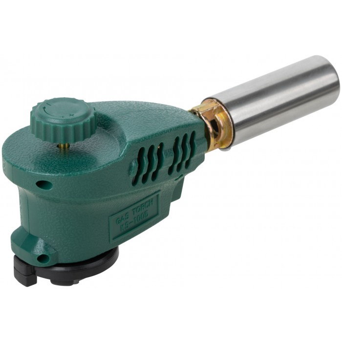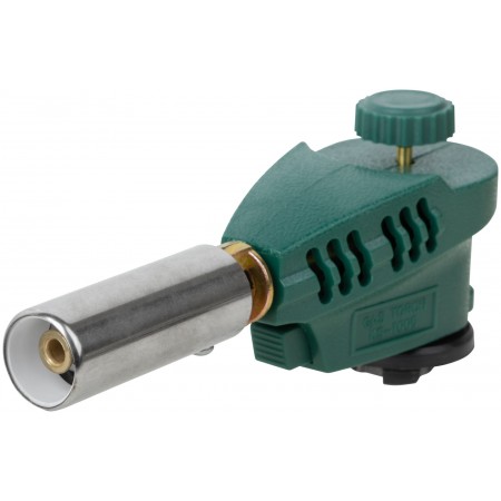 С пьезоподжигом. Для розжига костра, разогрева трубопроводов, нагрева предметов и различных ремонтных работ. Используется со стандартным цанговым газовым баллоном. Регулировка пламени, температура 1300 °C. Сопло D=22 мм. Материал: пластиковый корпус, цинковый сплав, медь, нержавеющая сталь. Упаковка: блистер.