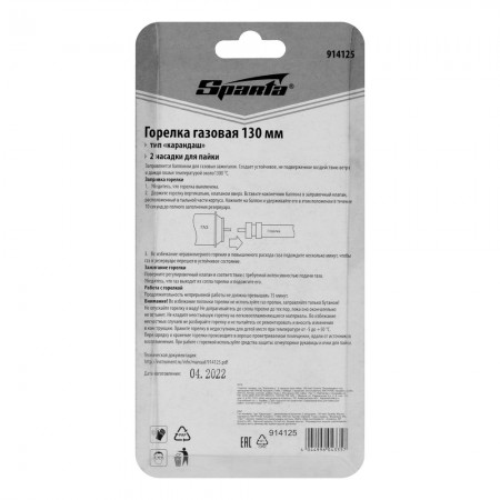 Горелка газовая, тип "Карандаш", 2 насадки для пайки, 130 мм Sparta (914125)