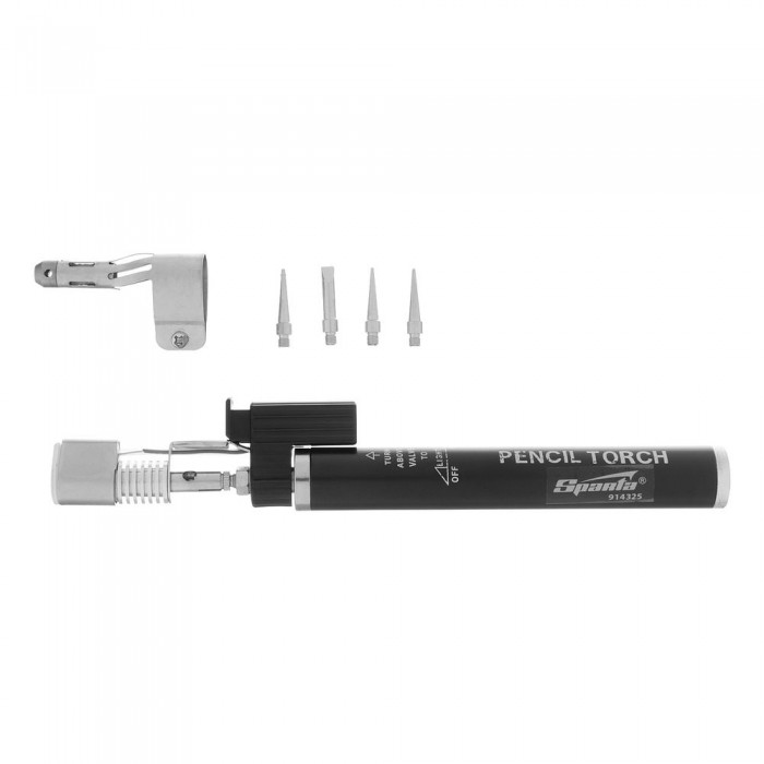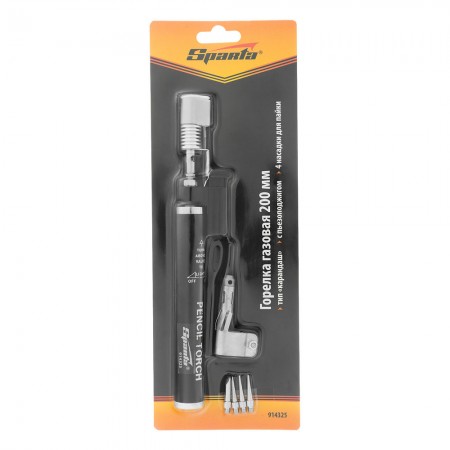 Горелка газовая, тип "Карандаш" c пьезоподжигом + 4 насадки для пайки, 200 мм Sparta (914325)