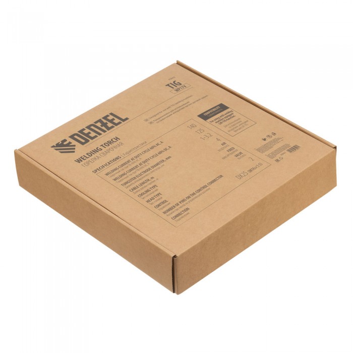 Горелка сварочная TIG WP17V, прямое подключение к баллону, 4 метра Denzel (93643)