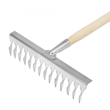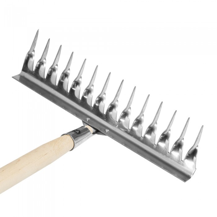 Грабли, нержавеющая сталь, 340 х 1300 мм, 14 витых зубьев, деревянный черенок, Сибртех (61760)