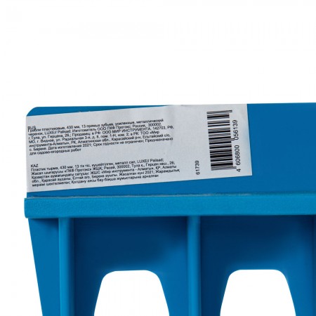 Грабли пластиковые, 430 мм, 13 прямых зубьев, усиленные, металлический черенок, Luxe, Palisad (61739)