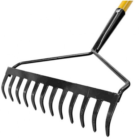 Грабли, прямой зуб, 12 зубьев, с желтым метализированным черенком (76968)