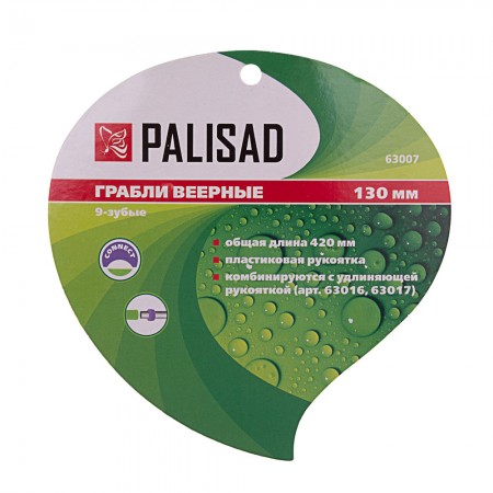 Грабли веерные 9 - зубые, 130 х 420 мм, стальные, пластиковая рукоятка, Connect, Palisad (63007)