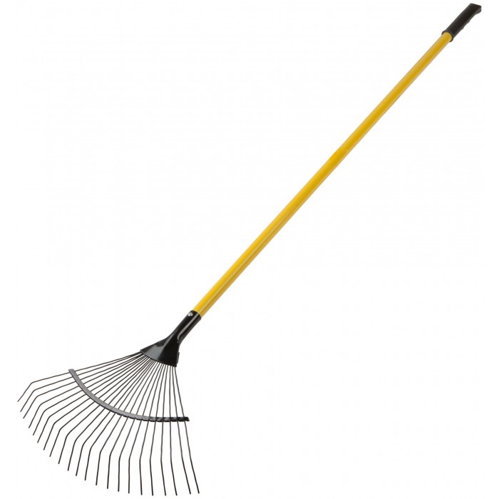 Грабли веерные проволочные, 22 зуба, 440х1553 мм, с желтым металлизированным черенком (76945)