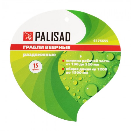 Грабли веерные стальные, 190 - 520 х 1200 - 1500 мм, 15 зубьев, раздвижные, стальной черенок, Palisad (6175655)