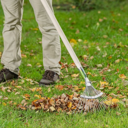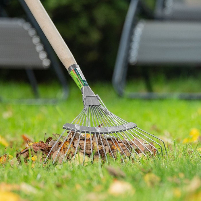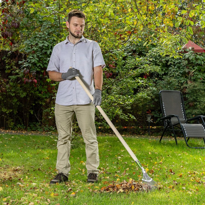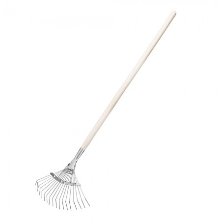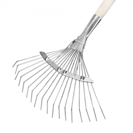 Грабли веерные стальные, 350 х 1450 мм, 18 круглых зубьев, деревянный черенок, Сибртех (61781)
