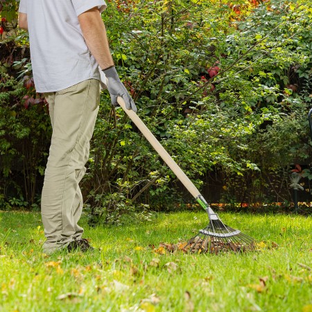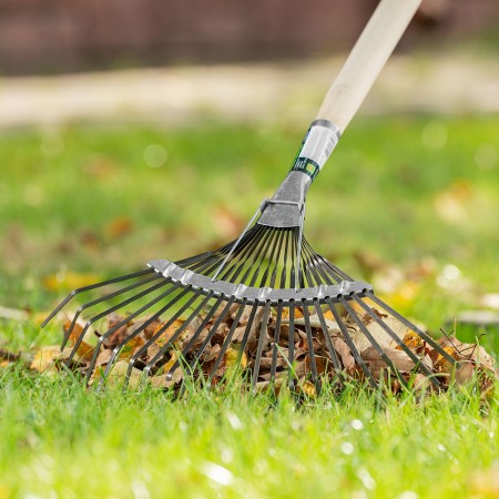 Грабли веерные стальные, 385 мм, 20 плоских зубьев, оксидированные, без черенка, Сибртех (61778)