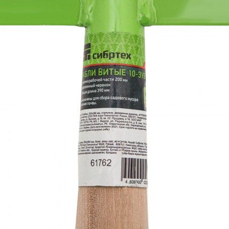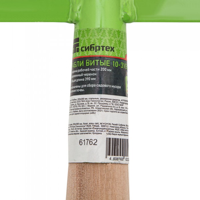 Грабли витые 10 - зубые, 200 х 390 мм, стальные, деревянная рукоятка, Агроном, Сибртех (61762)