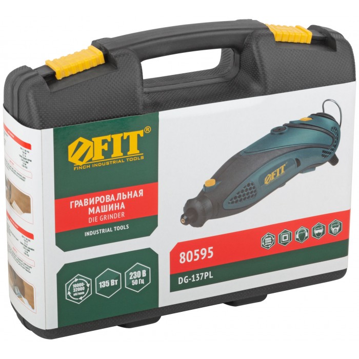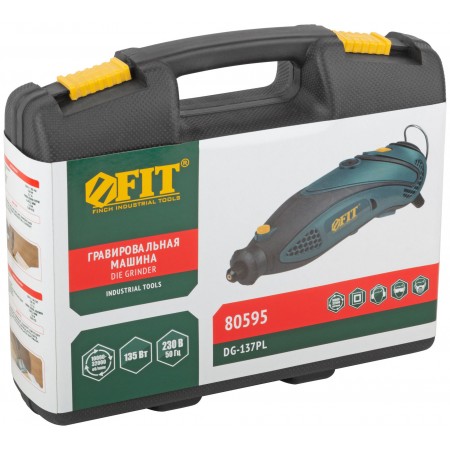 Гравировальная машина 135 Вт; 10000-32000 об/мин; 2,4/3,2 мм; БС щеток; набор насадок ; пластик. кейс (80595)