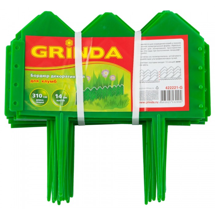 GRINDA 14 х 310 см, зеленый, декоративный бордюр для клумб (422221-G)