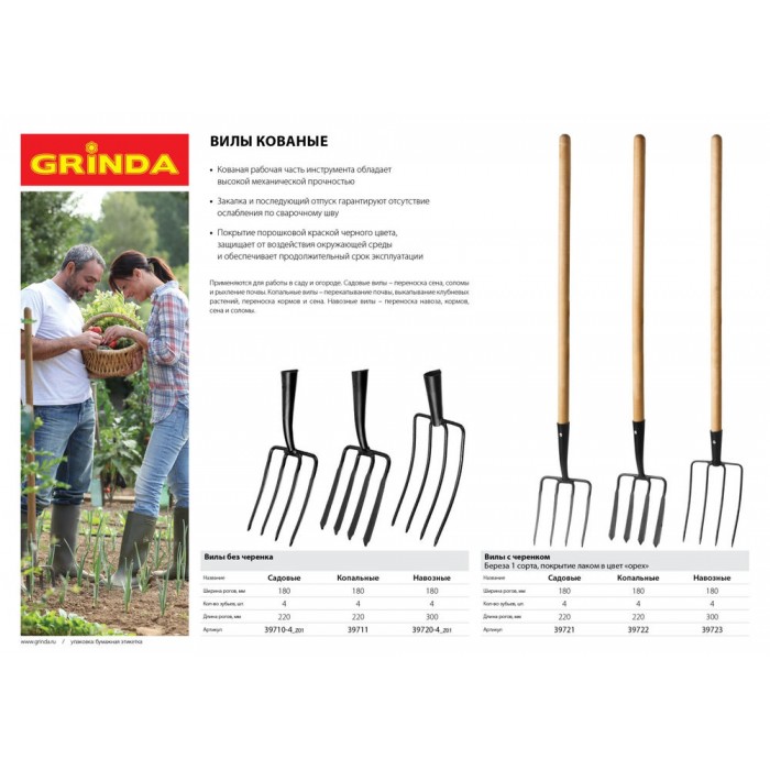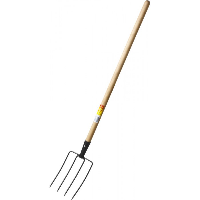 Вилы навозные кованые 180 х 300 х 1330 мм, четырёхрогие, кованные зубья, деревянный черенок высш. сорт GRINDA 39723