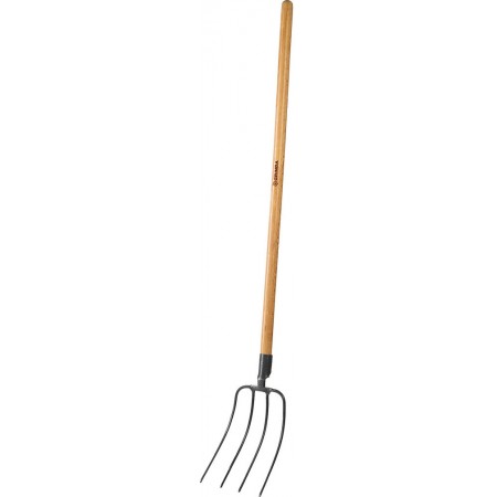 Вилы GRINDA для компоста применяются на садово-огородных участках, в сельском хозяйстве. Этот долговечный и функциональный инструмент изготовлен из материалов высшего качества и имеет продолжительный срок службы. Рабочая часть состоит из 4 закругленных зубцов из углеродистой стали. Прочный черенок из твёрдой древесины покрыт лаком. В комплект поставки входит чехол из ПВХ, обеспечивающий защиту рабочей части при хранении и транспортировке.