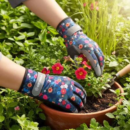 GRINDA AMBER, S (7), садовые перчатки из искусственной кожи с усиленным наладонником и кончиками пальцев, PRO Line (1139-S)