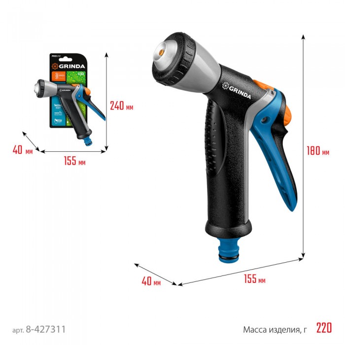 Профессиональные поливочные пистолеты-распылители GRINDA PROLine отличаются особой прочностью, надёжностью, удобством и долговечностью. Обеспечивают простое, быстрое и герметичное подключение к поливочной системе. Широкий ассортимент позволит подобрать модель идеально подходящую именно для ваших задач.