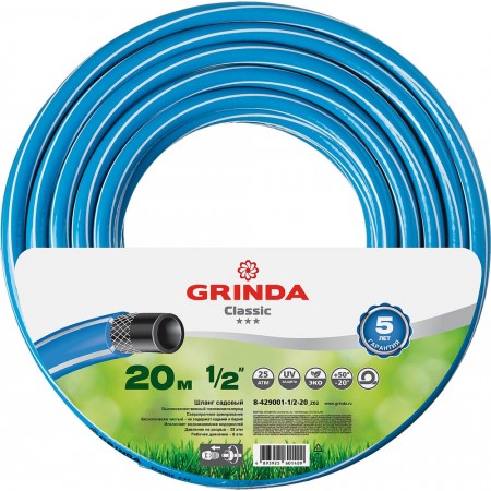 Поливочный шланг Classic, 1/2", 20 м, 25 атм, трёхслойный, сетчатое армирование полиамидной нитью GRINDA 8-429001-1/2-20_z02