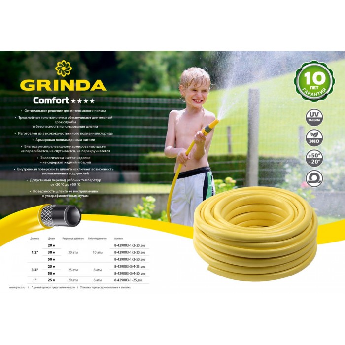 Поливочный шланг Comfort, 1/2", 20 м, 30 атм, трёхслойный, армированный GRINDA 8-429003-1/2-20_z02