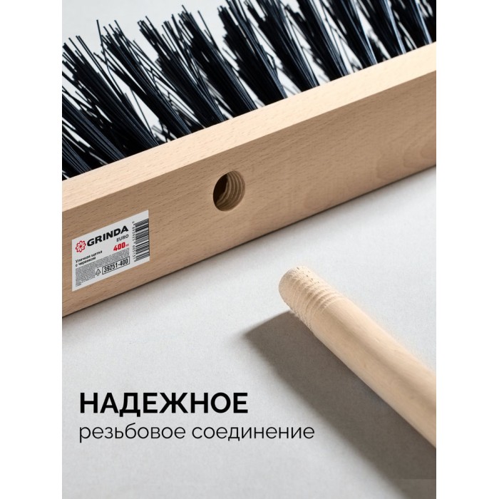 Уличная щётка с черенком EURO, буковая колодка 40см, шлифованный черенок из берёзы 120см (d22мм) щетина 70мм, 5-рядная GRINDA 39251-400