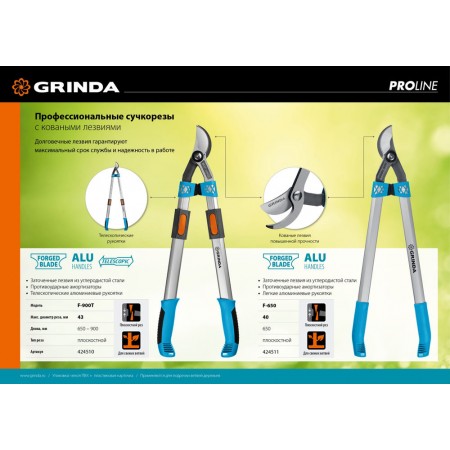 Профессиональные сучкорезы GRINDA PRO-LINE изготовлены из самых надёжных материалов. Обладают длительным сроком службы, легко режут.