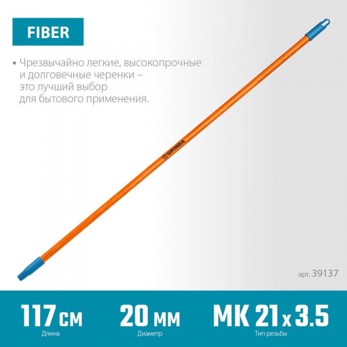 Черенок для щеток FIBER-120, фибергласовый, коническая резьба, длина 1170 мм, PROLine GRINDA 39137