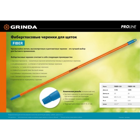 Черенок для щеток FIBER-140, фибергласовый, коническая резьба, длина 1370 мм, PROLine GRINDA 39138