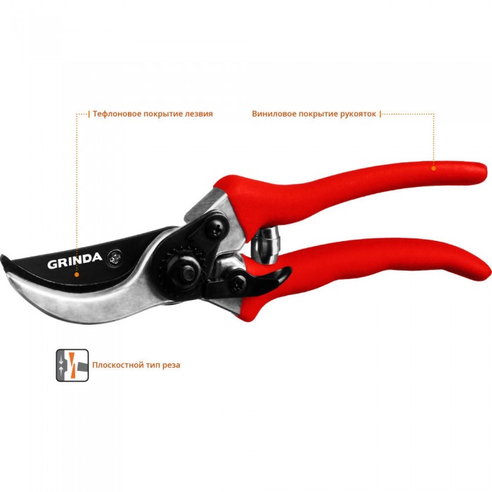 Плоскостной секатор G-11, 210 мм, лезвия из углеродистой стали, закалены, тефлоновое покрытие, алюминиевые рукоятки GRINDA 8-423001_z02