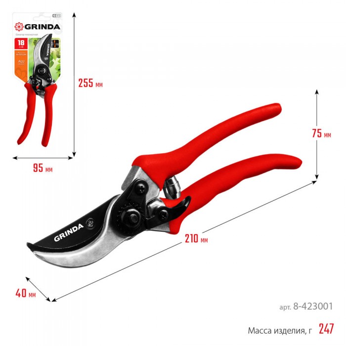 Все секаторы GRINDA являются прочными, долговечными и удобными изделиями, обеспечивая комфортный и лёгкий рез. Они выполнены из высококачественных материалов гарантирующих долгий срок эксплуатации.