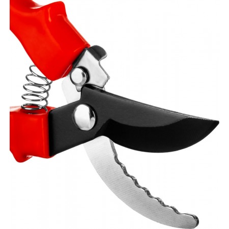 Зазубренное нижнее лезвие обеспечивает удобный захват веток при резе.
