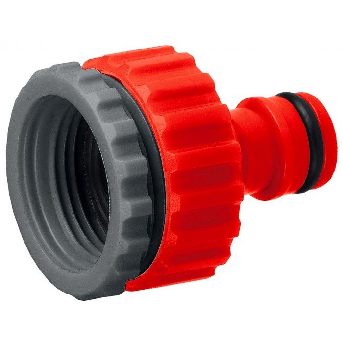 Применяется в качестве переходника между соединителем и водопроводной трубой или краном с внешней резьбой 3/4” или 1”.