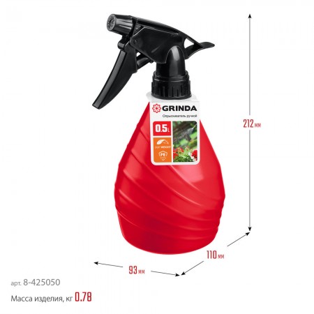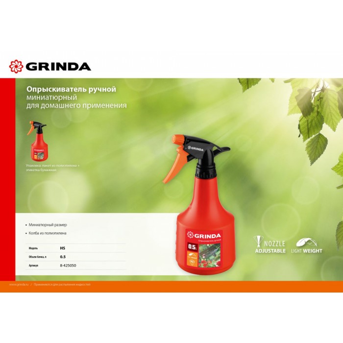Ручной опрыскиватель HS, 0.5 л, колба из полиэтилена GRINDA 8-425050_z02