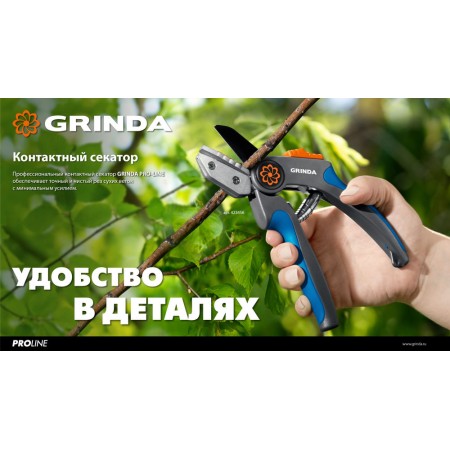 Профессиональные секаторы GRINDA PRO-LINE характеризуются самыми надёжными и современными материалами. Пользуясь этими секаторами вы обеспечите себе удовольствие и комфорт при работах в саду.