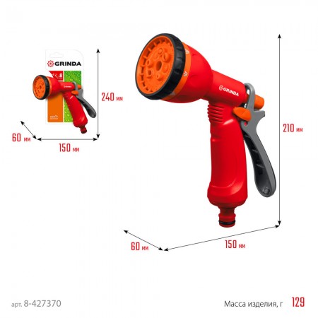 Поливочные пистолеты-распылители GRINDA удобны, надёжны и долговечны. Обеспечивают простое и качественное подключение к поливочной системе. Широкий модельный ряд с самыми современными и эффективными режимами полива.