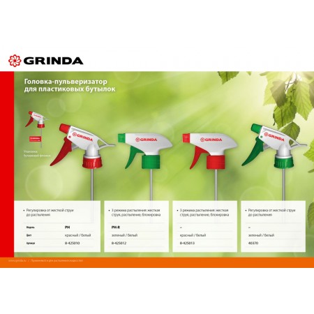 Головка-пульверизатор PH, для пластиковых бутылок, цвет красный/белый GRINDA 8-425010_z02