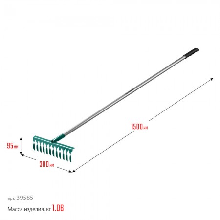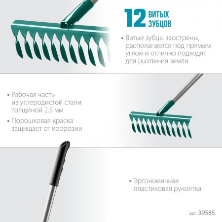 Садовые грабли PR-12T ALU, 380 х 95 х 1500 мм, 12 витых зубцов, углеродистая сталь, алюминиевый черенок, PROLine GRINDA 39585