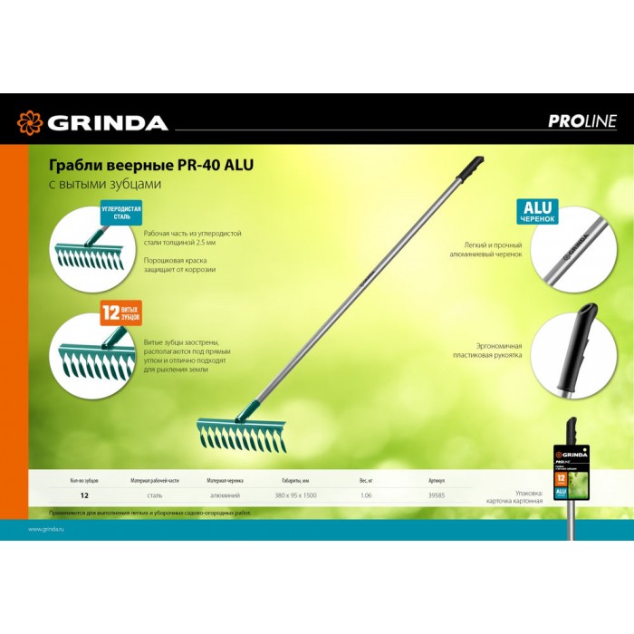 Садовые грабли Grinda с алюминиевым черенком максимально лёгкие и удобные