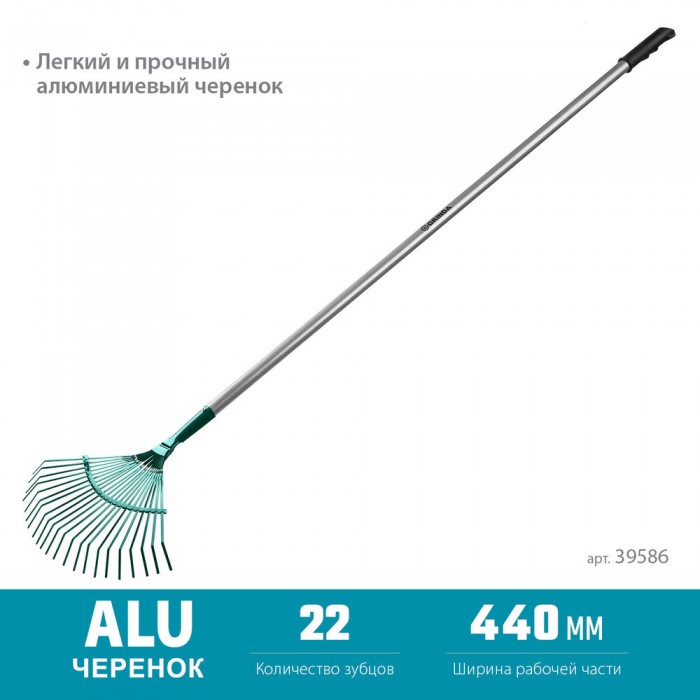 Лёгкий и прочный алюминиевый черенок позволяет затрачивать значительно меньше усилий во время работы и увеличивает срок службы изделия