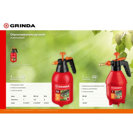 Опрыскиватели GRINDA надежны и долговечны. Удобны в работе, опрыскивают качественно.