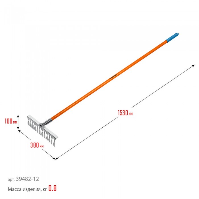 Черенок из фибергласса обладает высокой прочностью и лёгким весом, не выскальзывает из рук.
