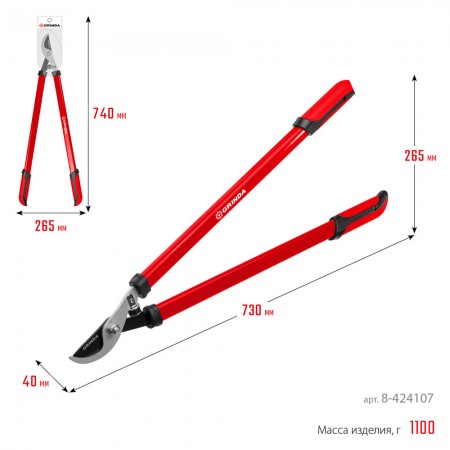 Большой плоскостной сучкорез R-740, 740 мм, закаленные лезвия, стальные рукоятки GRINDA 8-424107_z02