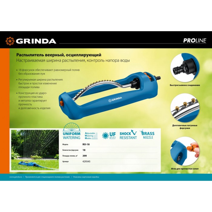 Профессиональные стационарные распылители GRINDA PROLine отличаются особой прочностью, надёжностью, удобством и долговечностью. Обеспечивают простое, быстрое и герметичное подключение к поливочной системе. Широкий ассортимент позволит подобрать модель идеально подходящую именно для ваших задач.