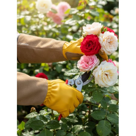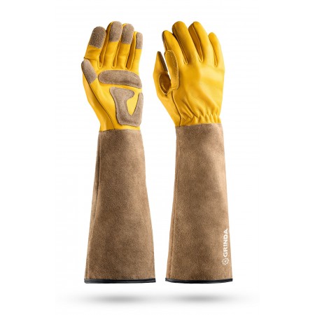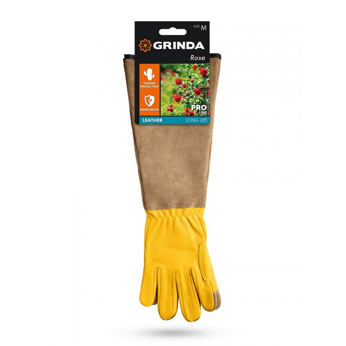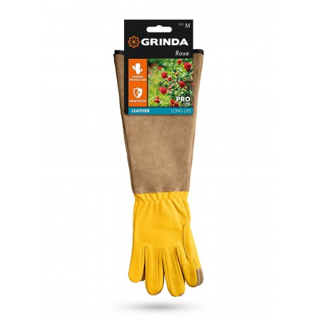 GRINDA ROSE, M (8), кожаные садовые перчатки для колючих кустарников с увеличенной крагой, усиленная ладонь и кончики пальцев, PRO Line (11303-M)