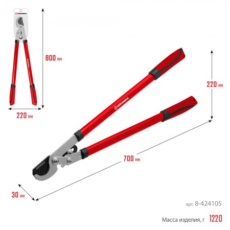 Усиленный плоскостной сучкорез RX-700, 700 мм, с шестерённой передачей, закаленные лезвия GRINDA 8-424105_z02