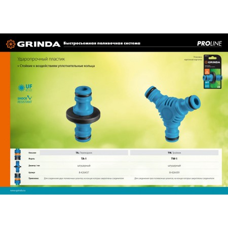 Профессиональные аксессуары серии GRINDA PRO-LINE для поливочных систем отличаются прочностью, надёжностью и долговечностью. Обеспечивают быстрое, простое и герметичное соединение элементов. Широкий ассортимент поможет подобрать нужную модель для любого популярного типа и размера поливочной системы.