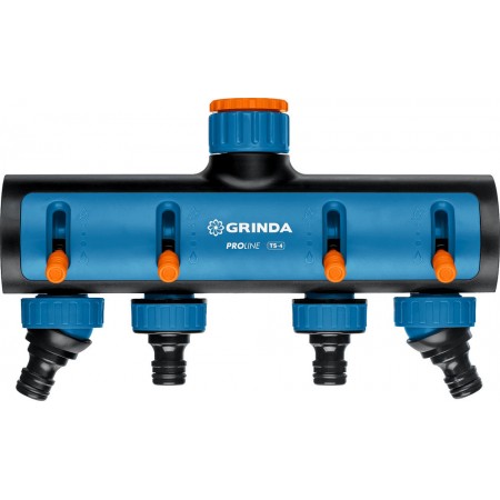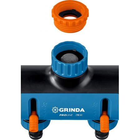 Применяется для одновременного подключения четырех водозаборных линий к водопроводной трубе или шлангу с внешней резьбой 3/4”–1”.