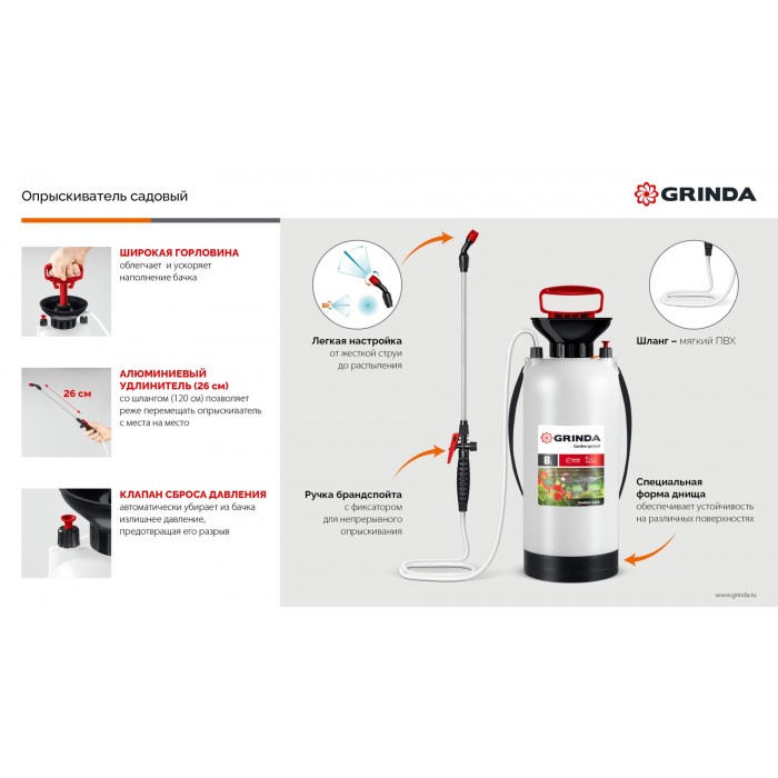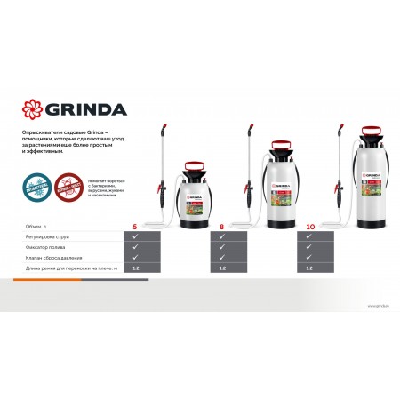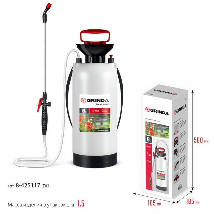 GRINDA TS-8, 8 л, широкая горловина, устойчивое днище, переносной опрыскиватель (8-425117_z03)